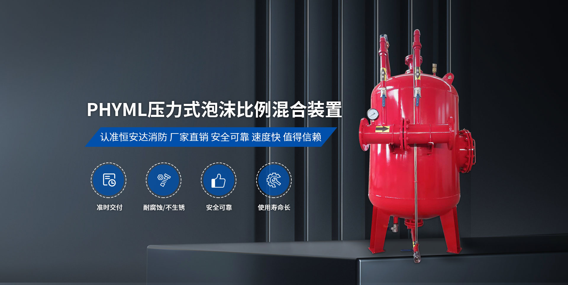 衛輝市恒安達消防設備有限公司,位于中國旅游城市比干故里——河南省衛輝市,公司位置緊鄰 107 國道、新濮公路、京珠高速,交通十分便利。  我公司主要產品有:PHY/PHYM系列壓力式比例混合裝置、消防增壓穩壓給水設備、半固定式泡沫滅火裝置、PC 系列泡沫產生器、PS/PP/PL 系列消防炮、PSG 型泡沫消火栓箱、七氟丙烷滅火裝置、水成膜泡沫滅火劑、合成泡沫滅火劑、抗溶水成膜泡沫滅火劑、抗溶泡沫滅火劑、高倍泡沫滅火劑、A 類泡沫滅火劑、水系泡沫滅火劑、消防泵等。并承接老油罐帶油無火花開孔消防改造工程。以上設備,廣泛用于石油、化工、機場、碼頭、電廠、水上船舶、油庫等場地的泡沫滅火裝置?! ∥夜緭碛懈鞣N工藝先進的專用設備 60 余臺套,各種試驗檢測設備 10 余臺套,擁有數十名技師等人才。本公司所有產品均通過國家消防裝備質量監督檢驗中心的型式檢驗。我公司用科學的管理模式,雄厚的技術力量,嚴格的質量保障體系,確保產品質量穩定可靠,快捷和完善的售后服務,樹立我們的企業形象并為消防事業作出貢獻。  公司自創建以來,始終堅持“規范質量行為,滿足顧客要求”的質量和經營方針,一直堅持“以質量為基礎,以信譽為生命、以公平的價格贏得客戶”的信念,竭誠為廣大客戶和社會各界提供產品和良好的服務。